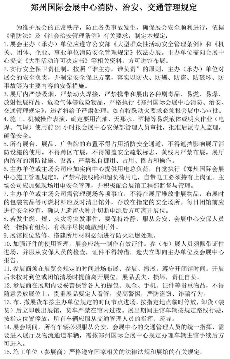 《鄭州國際會展中心消防、治安、交通管理規(guī)定》文件下載