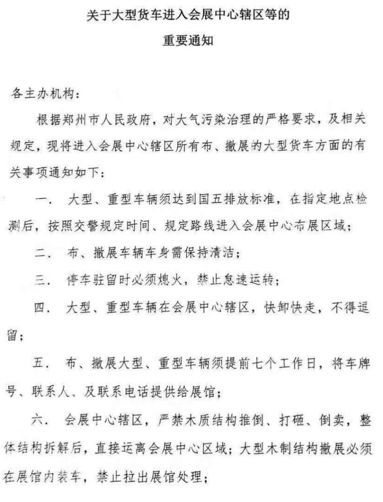 大貨車進(jìn)入會展中心區(qū)域的通知
